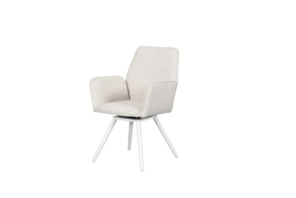 Its structure of sturdy aluminium -available in anthracite or white- provides light weight and durability, while the beige waterproof textile offers a soft, elegant feel and is easy to maintain.