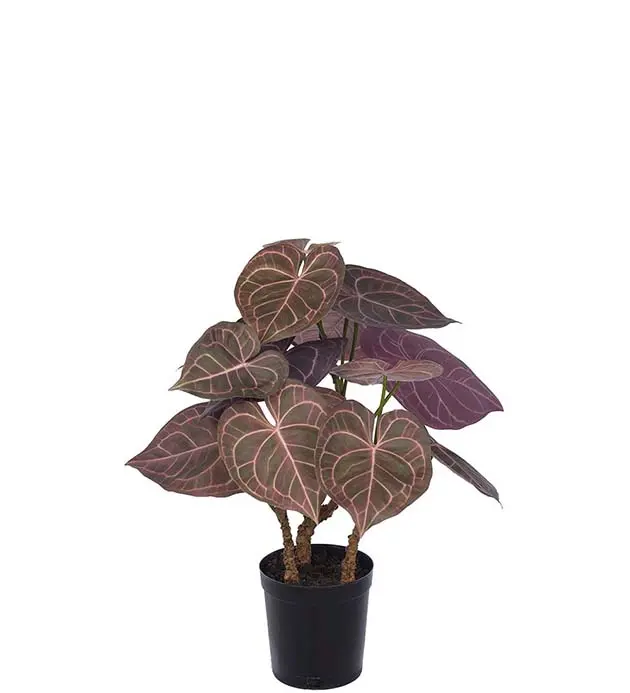 Discover the decorative power of Artificial Anthurium in burgundy, a plant that stands out for its velvety texture and striking colouring.