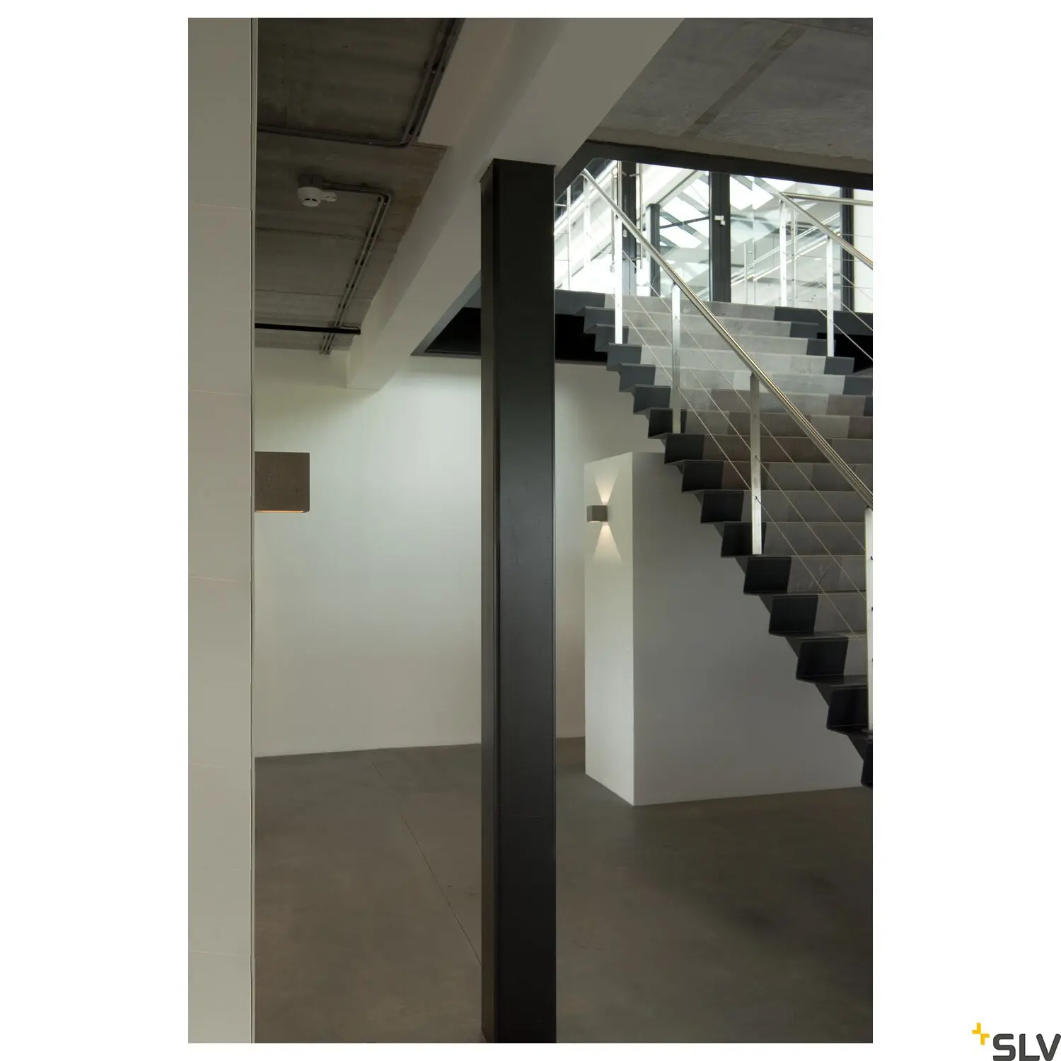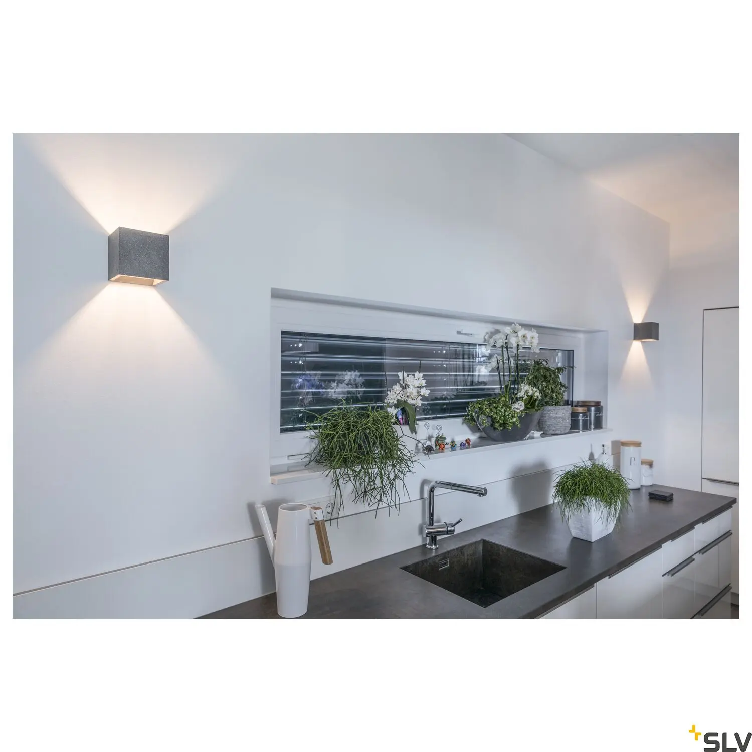 Design cubique minimaliste avec éclairage UP/DOWN, compatible avec LED Retrofit et connexion directe à 230 V pour une installation simple et efficace.