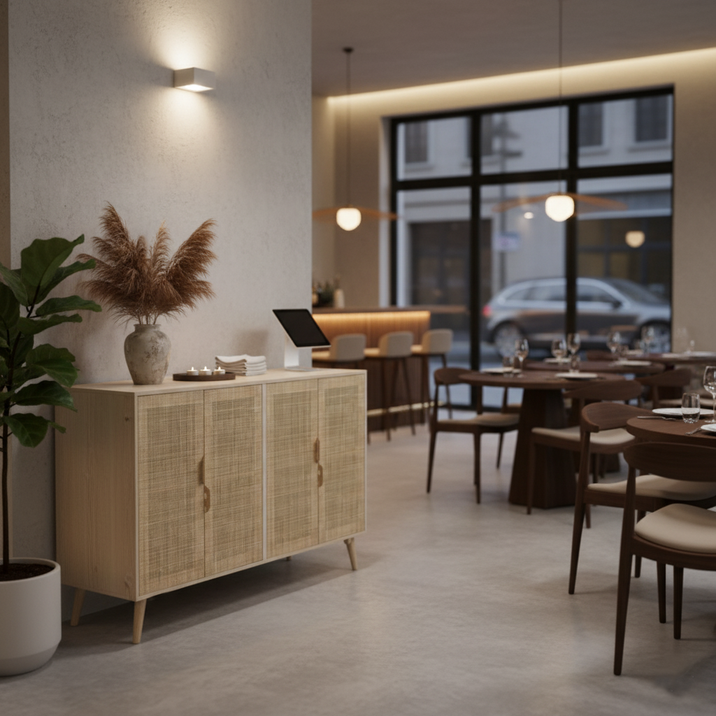 Ideal tanto para salones como restaurantes, ayuda a mantener el orden con un toque elegante y versátil que se adapta a diferentes ambientes.