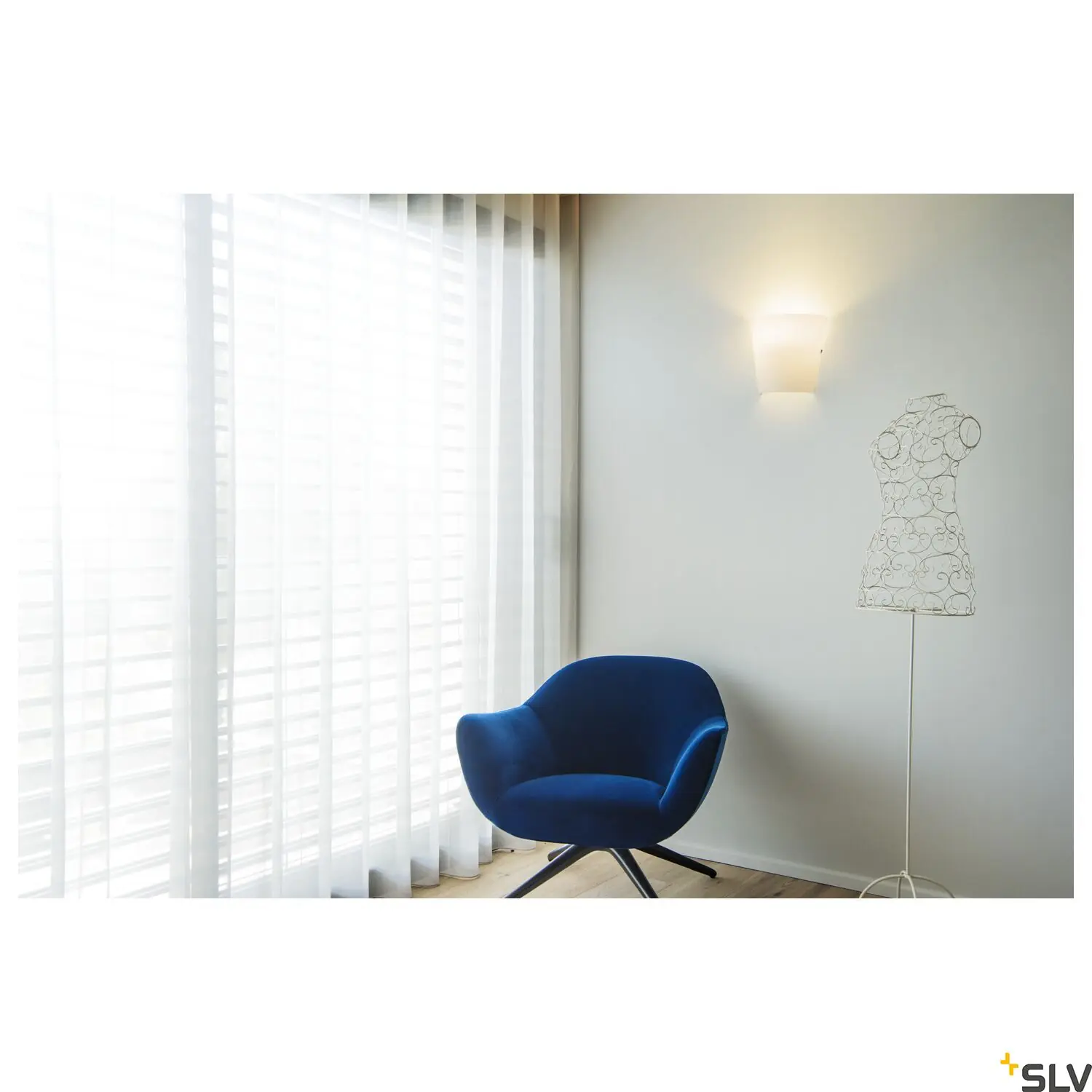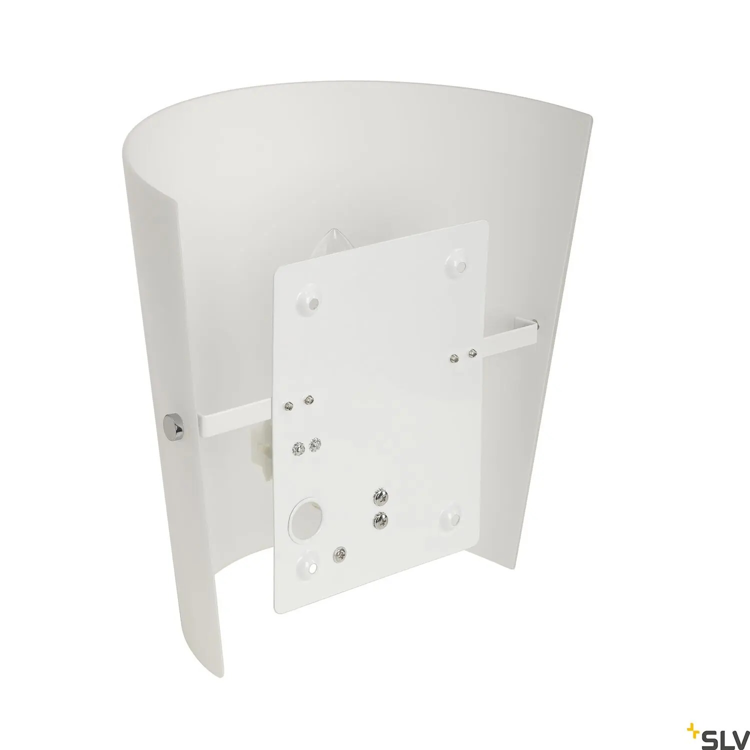 Luminaria de pared con pantalla de vidrio satinado integral que oculta todos los componentes técnicos, ofreciendo una apariencia de luz flotante y pura con compatibilidad E27 para máxima versatilidad de fuentes lumínicas.