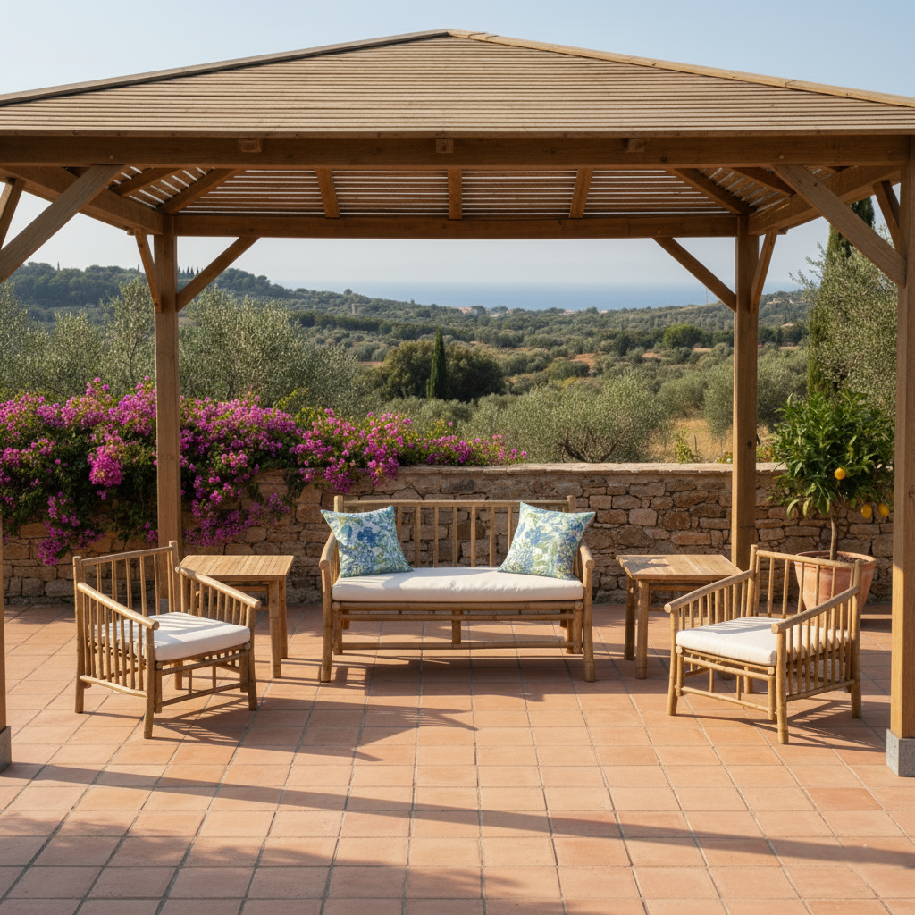 Conjunto de Muebles Rústico de Bambu/Algodón