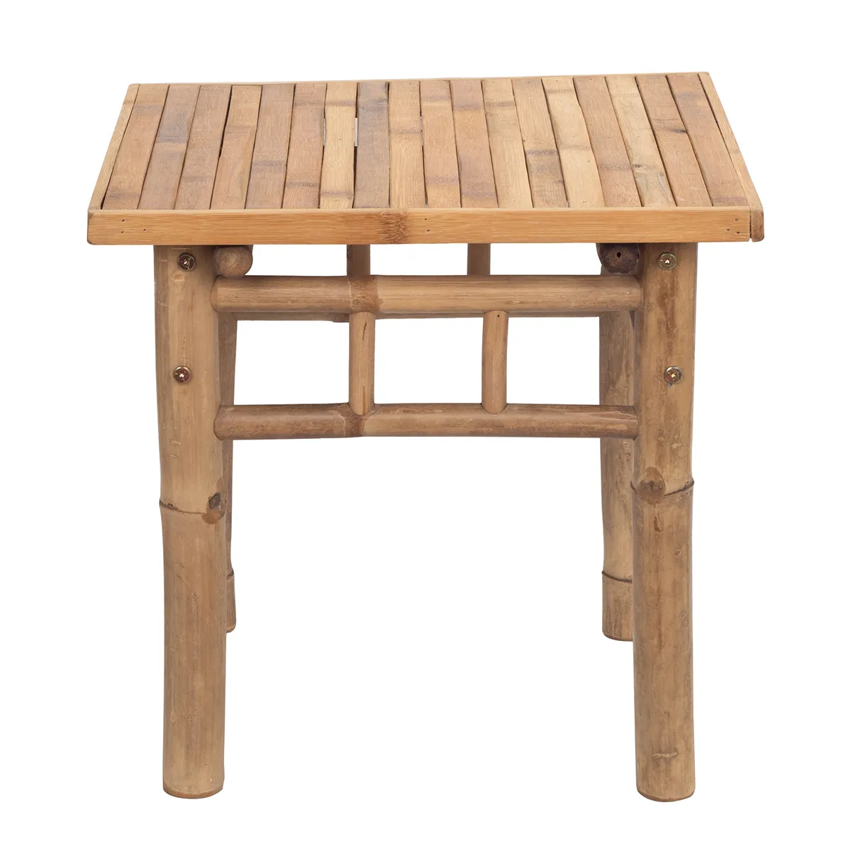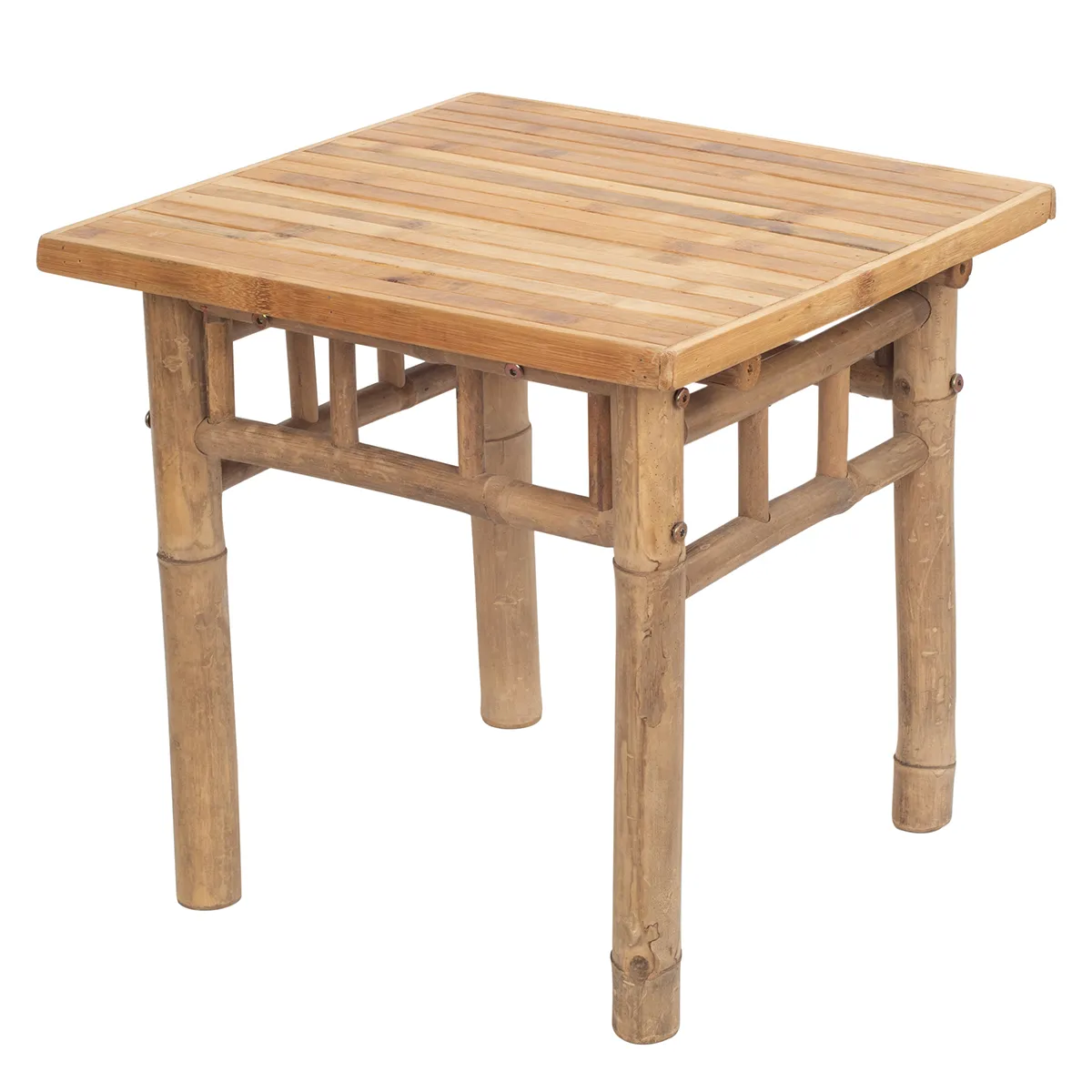 Un conjunto artesanal de bambú natural con cojines de algodón que aporta un estilo rústico y acogedor a cualquier terraza o jardín. Incluye un sofá de 2 plazas, dos sillones individuales y dos mesillas auxiliar con cojines desenfundables para mayor comodidad.