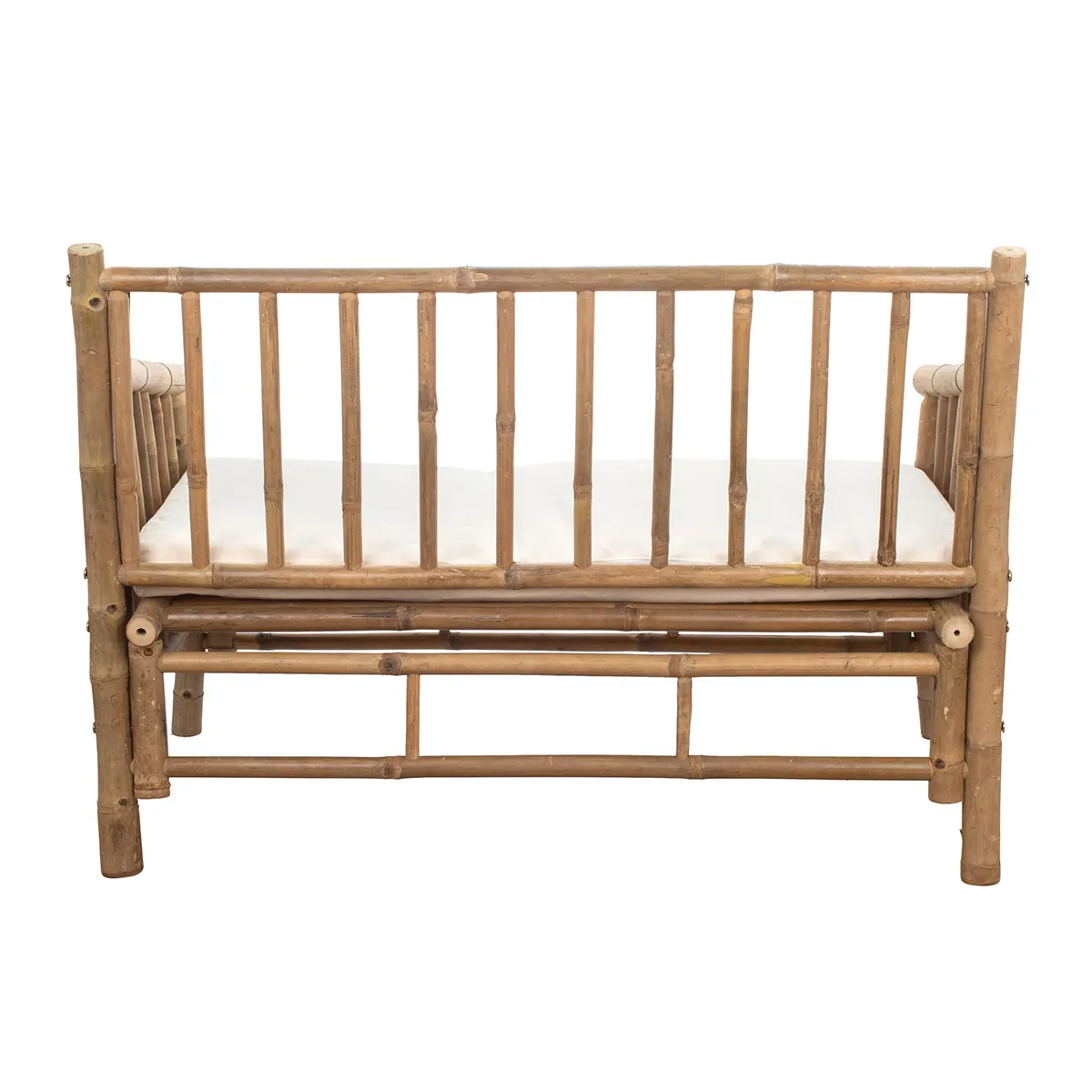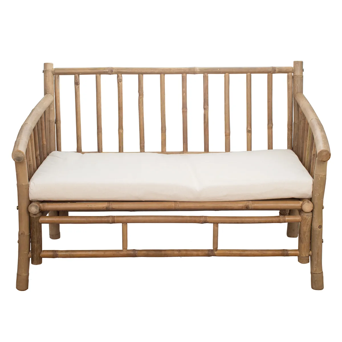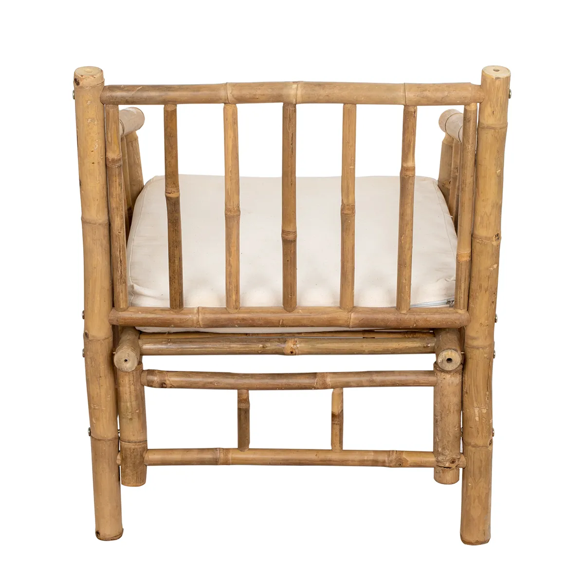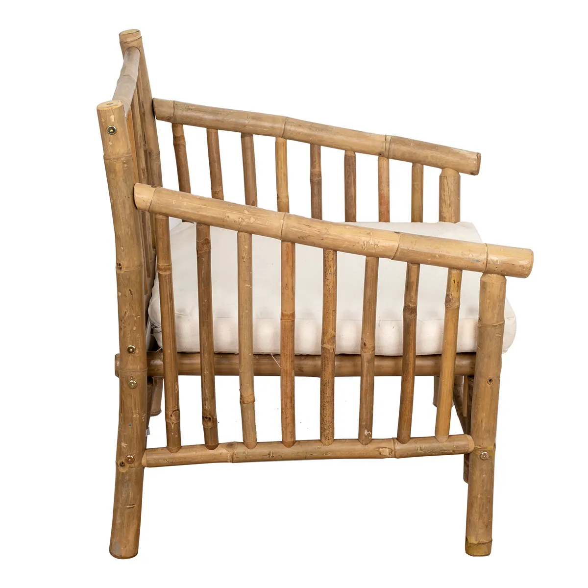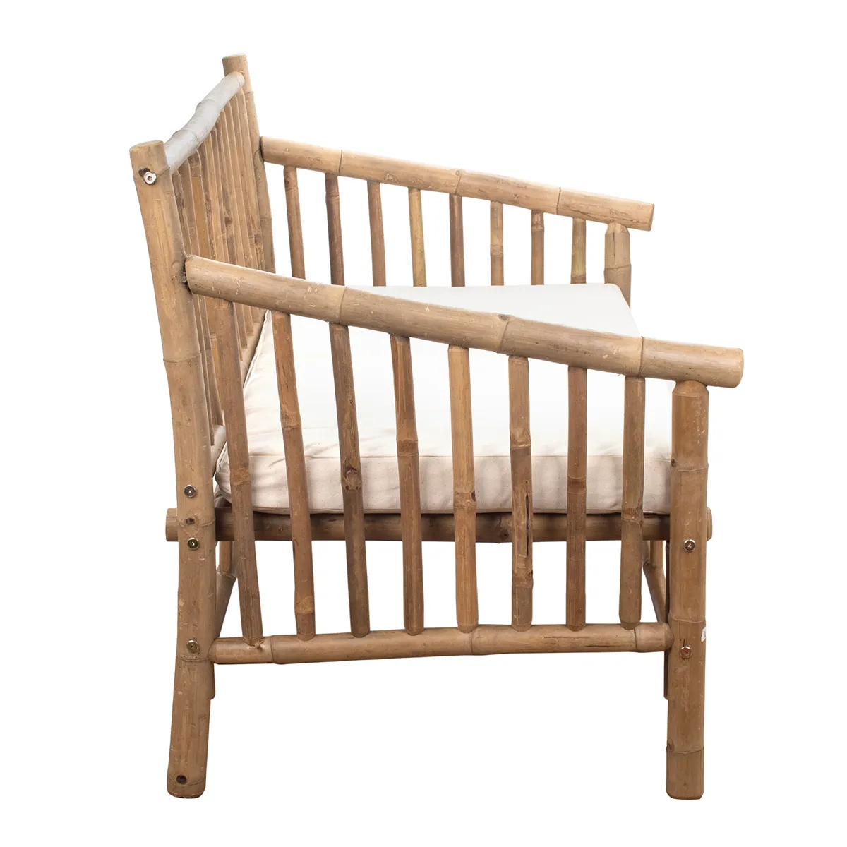 - Materiales: estructura de bambú natural y cojines de algodón