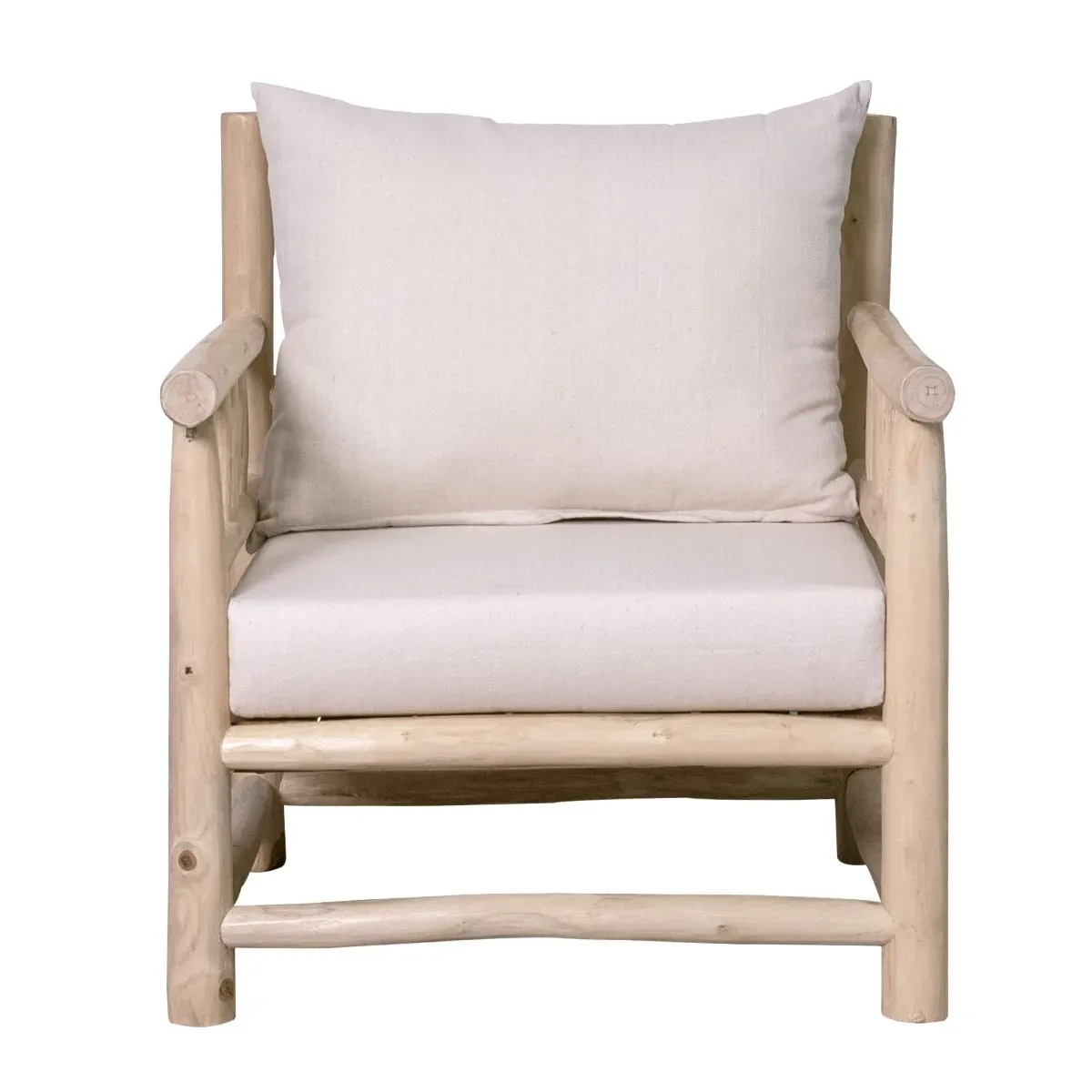 - Materiales: estructura de madera de teca maciza y cojines de algodón