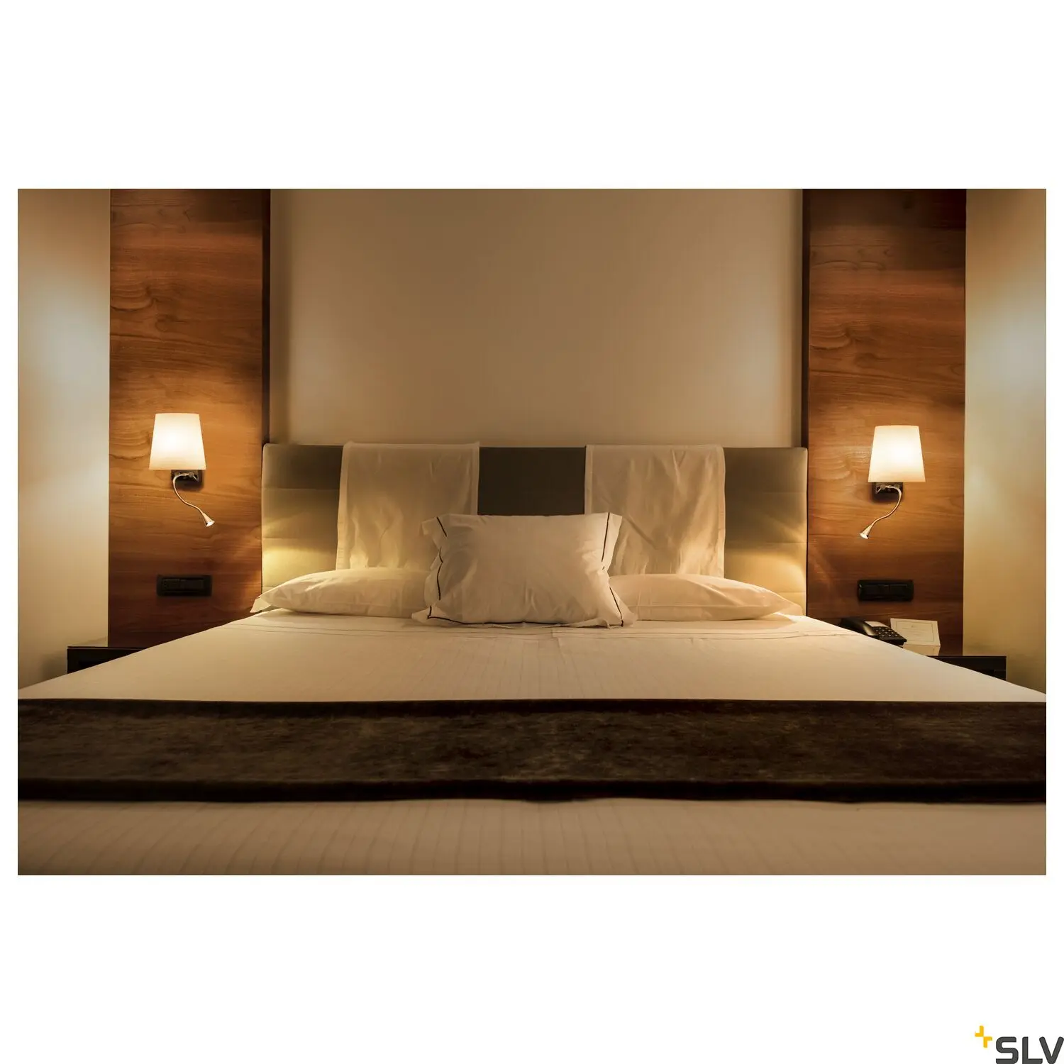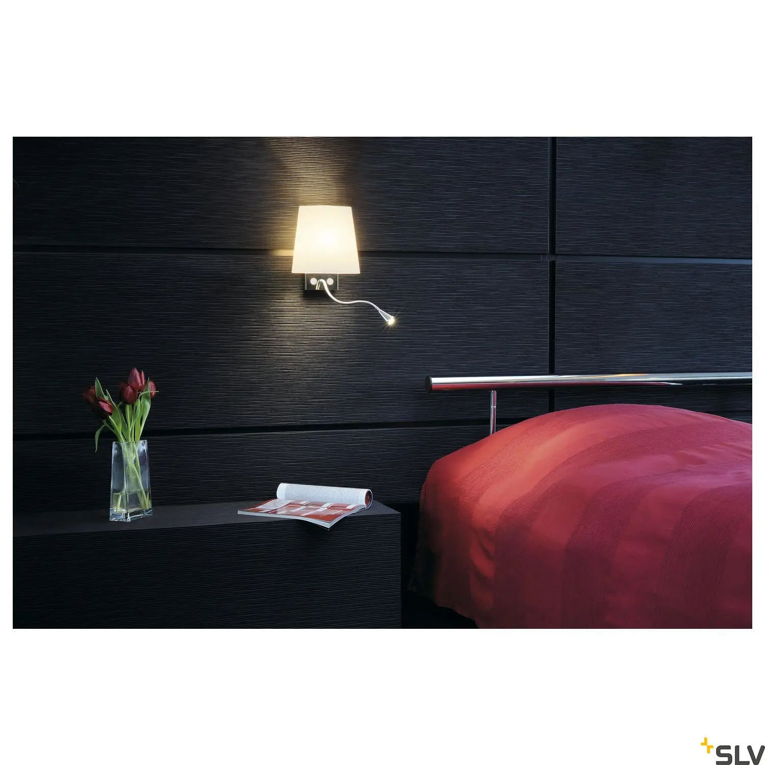 Un aplique versatil con luz de lectura LED regulada, brazo flexible y dos interruptores independientes que combinan diseño elegante y maxima funcionalidad.
