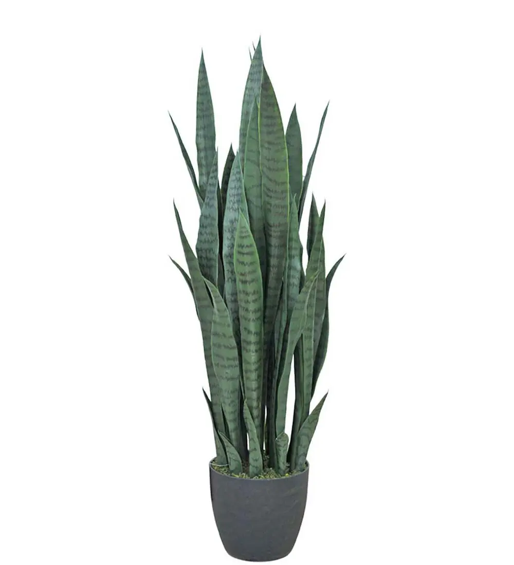 Esta magnífica planta artificial ofrece todas las ventajas estéticas de la popular «lengua de suegra» sin ninguna preocupación.
