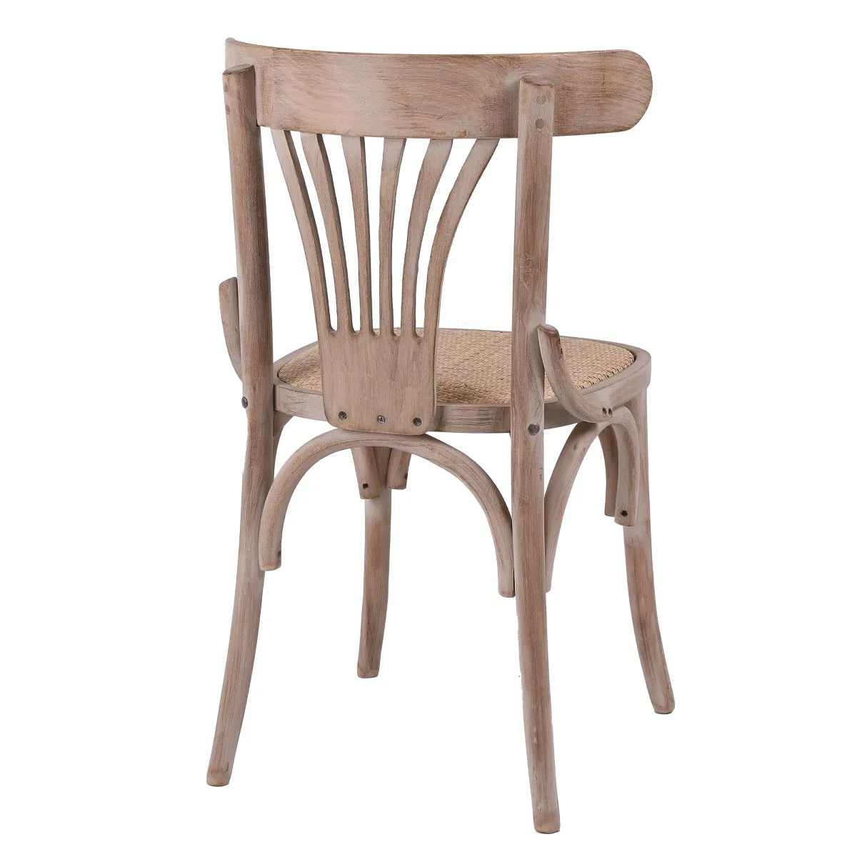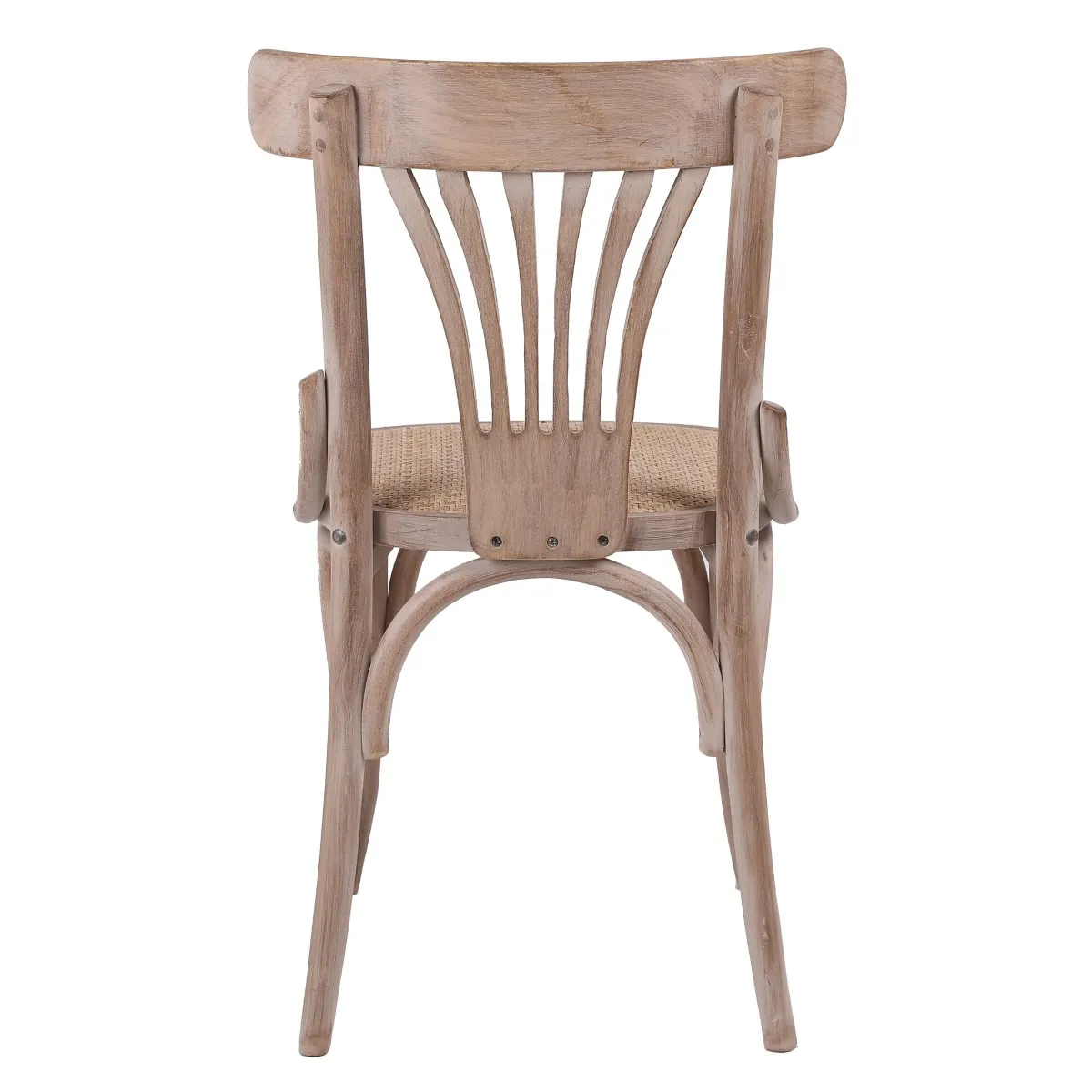 - Material de la silla: Madera de olmo envejecido con asiento trenzado de fibra natural.