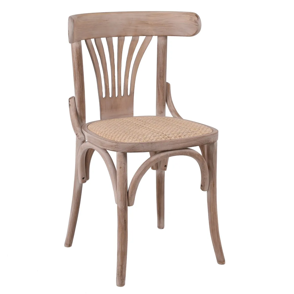 Crea un ambiente cálido, natural y elegante con estás sillas de comedor. Su diseño combina madera de olmo con rattan, logrando un equilibrio natural perfecto. Ideal para interiores, comercios, bodas rústicas o terrazas cubiertas que buscan autenticidad y estilo.