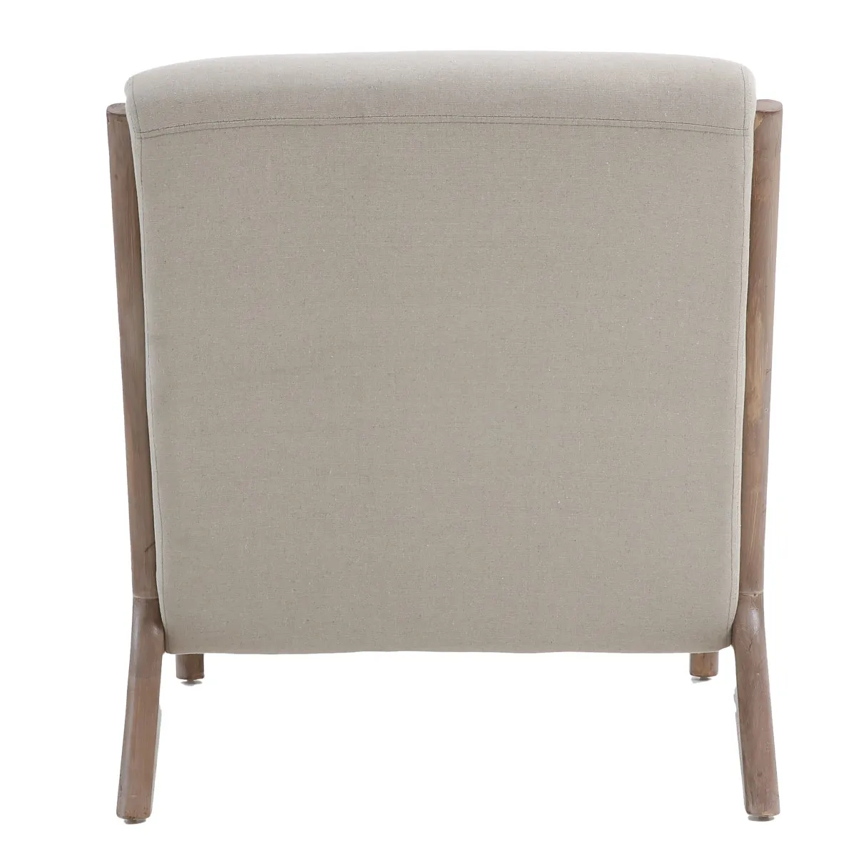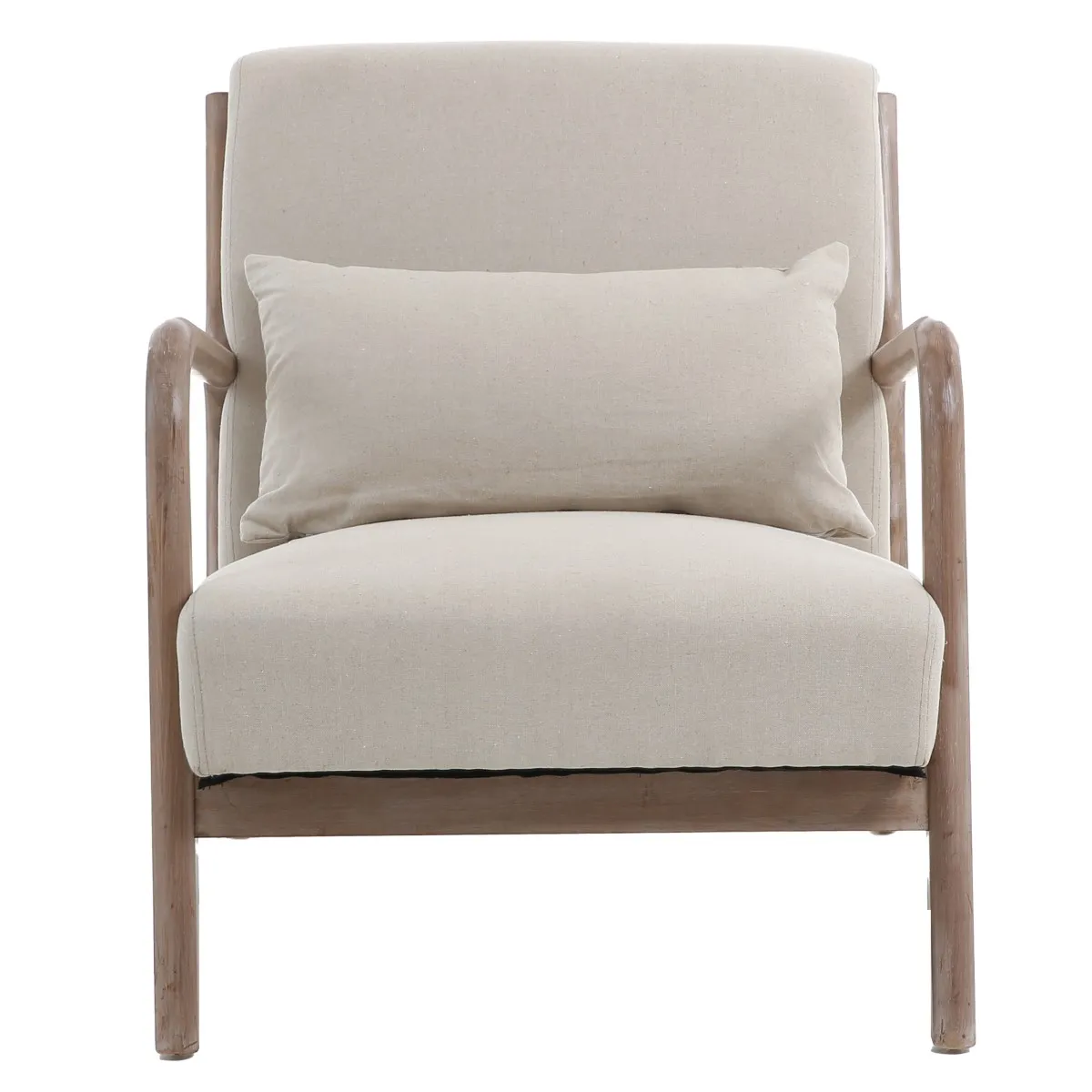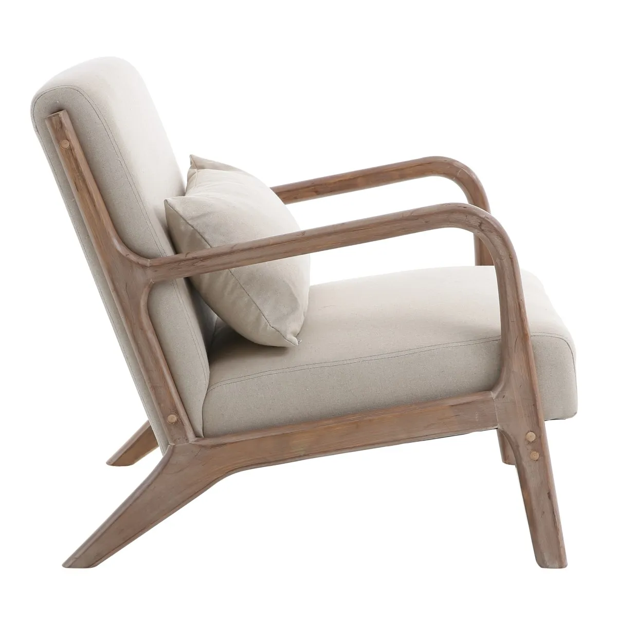 Sillón de diseño nórdico en madera de caucho y algodón natural.