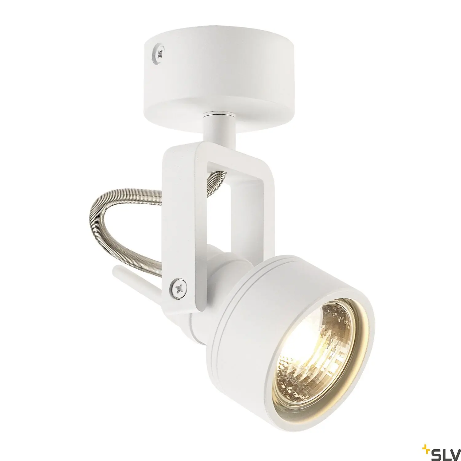 Projetor rotativo e regulável com casquilho GU10, disponível em acabamentos modernos e fácil de instalar, ideal para iluminação direcional em espaços residenciais e comerciais.