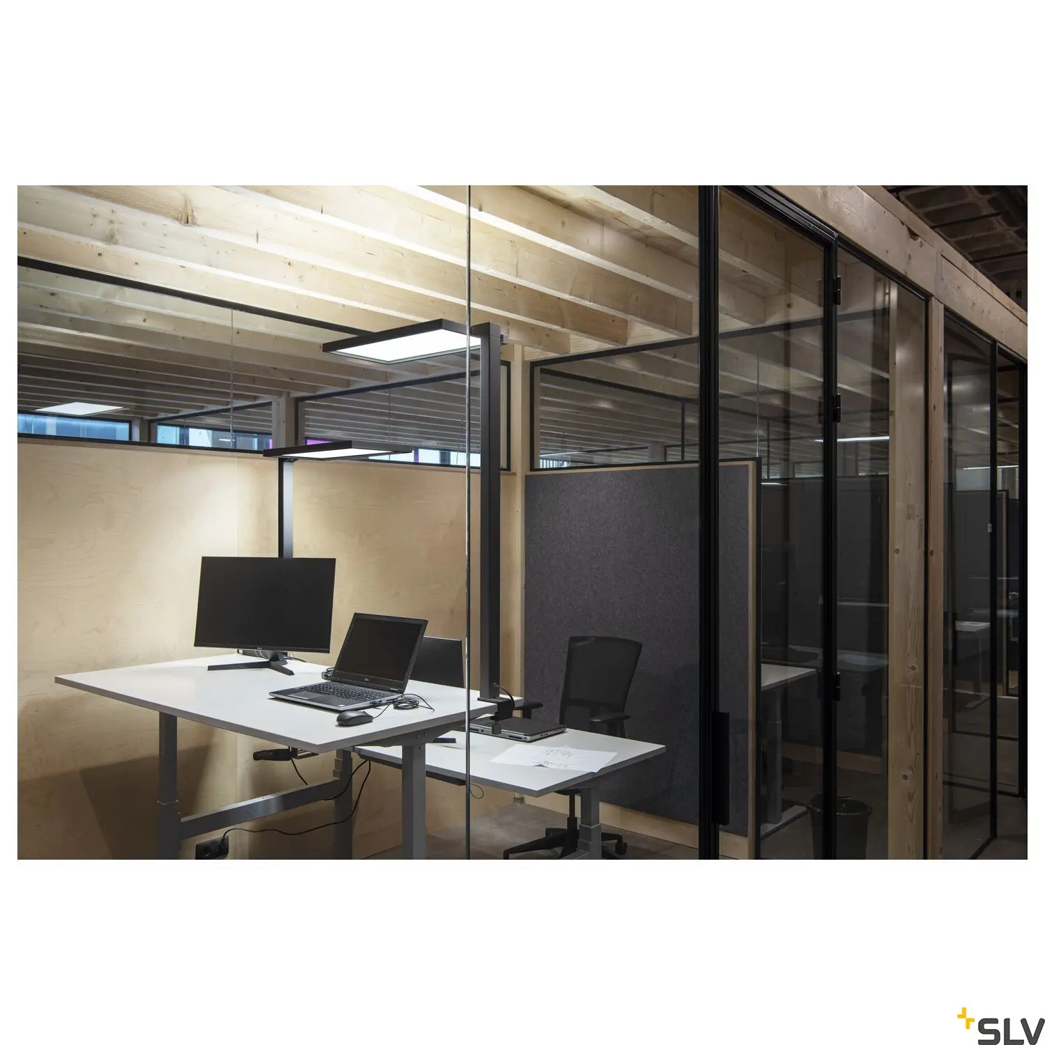 - LUZ DE TRABALHO: Disponível nos acabamentos **preto** e **branco**, este modelo mais versátil adapta-se perfeitamente a uma variedade de decorações de escritório, com a mesma tecnologia inteligente e eficiência energética.