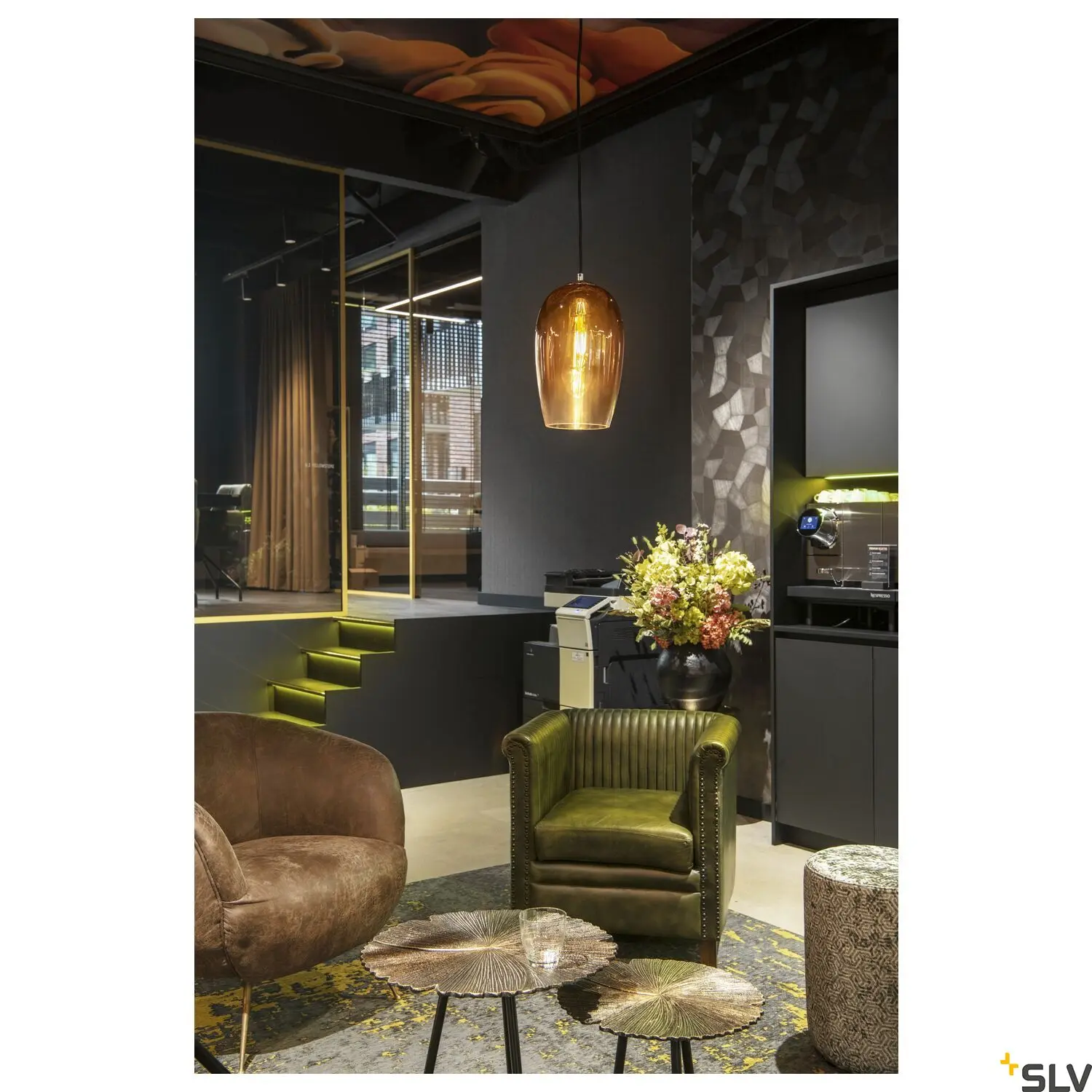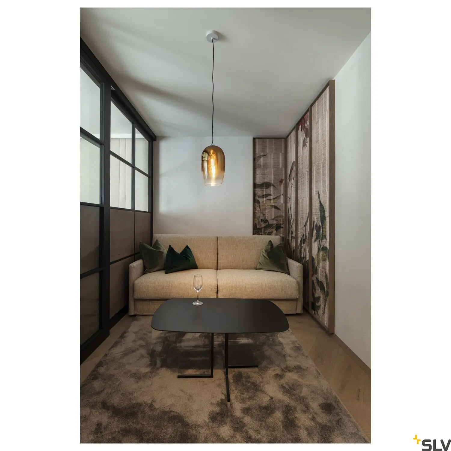 - Materiais de qualidade superior: Vidro de alta qualidade com acabamentos metálicos e elementos naturais
