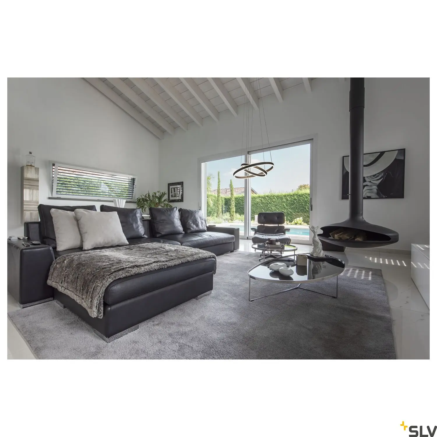 No entanto, oa sua caraterística mais marcante é a emissão dupla UP/DOWN que cria efeitos de iluminação espectaculares. Desta formaA série vai desde modelos minimalistas a peças esculturais, como a ONE VERTICAL PD com anéis entrelaçados.